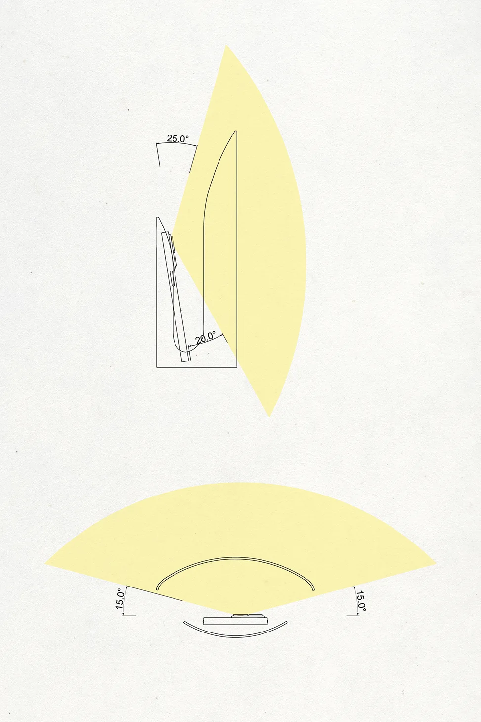 To find the optimal shape, different forms were tested and evaluated. Key aspects included handling, light distribution, and ease of 3D printing.The exact angle of the phone’s flashlight was measured to ensure that most of the light is captured by the lampshade.